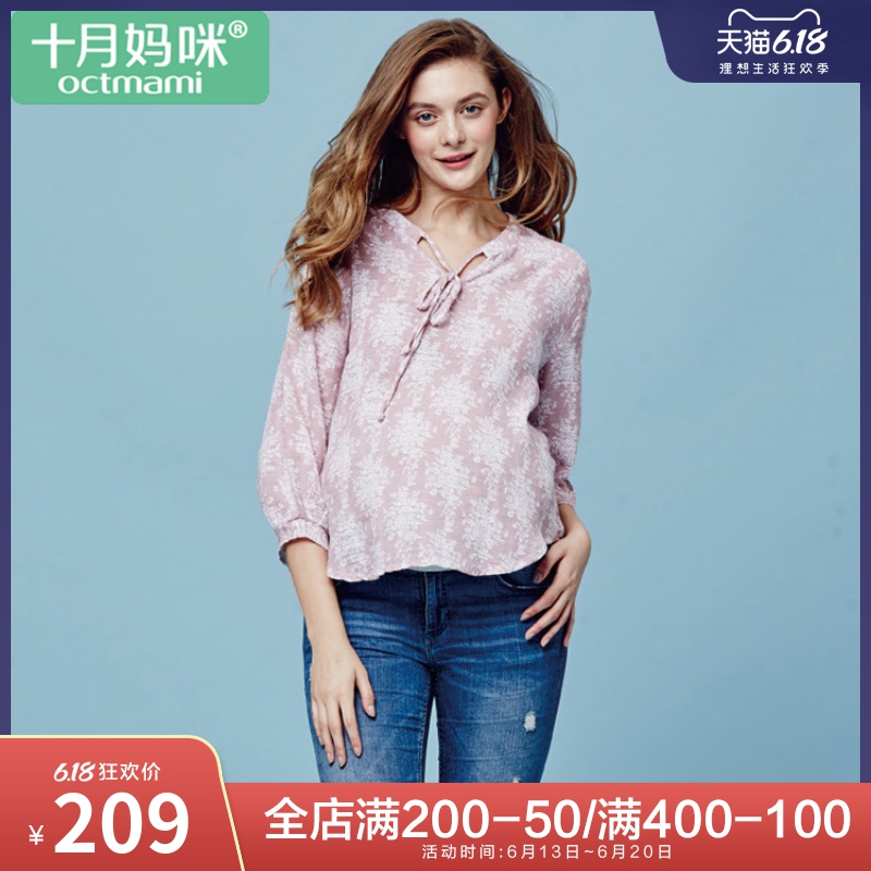 十月妈咪孕妇春秋装孕妇针梭相拼可哺乳上衣衬衫针织衫宽松职业装