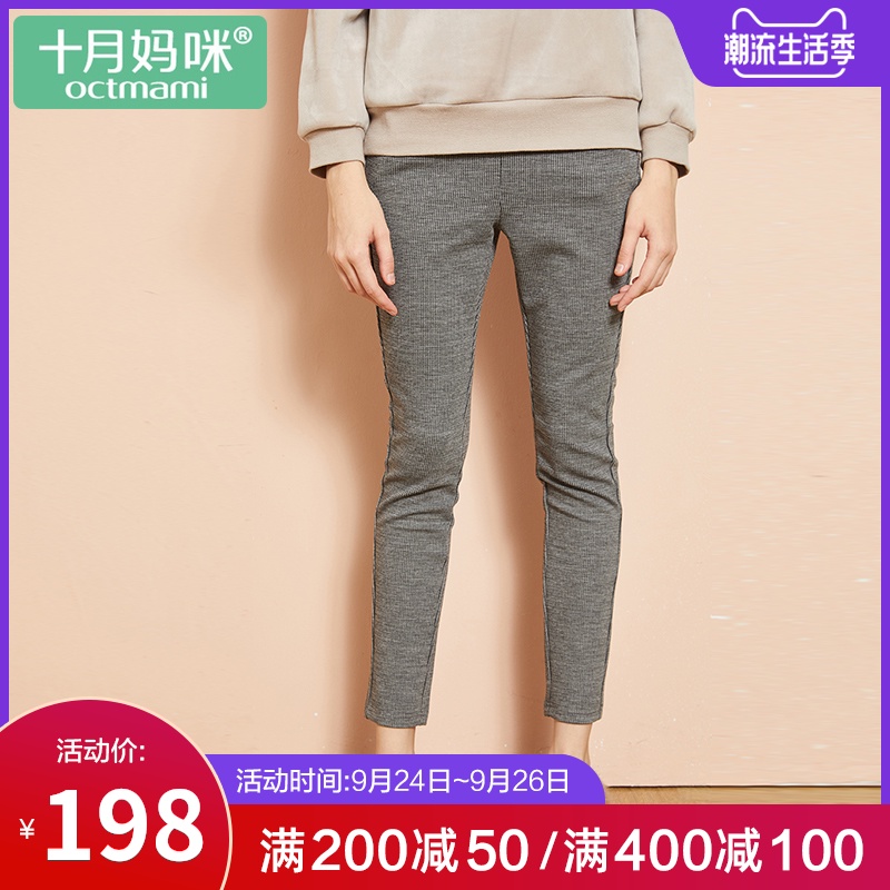 十月妈咪孕妇装新款秋装孕妇韩版时尚针织千鸟格托腹裤铅笔裤