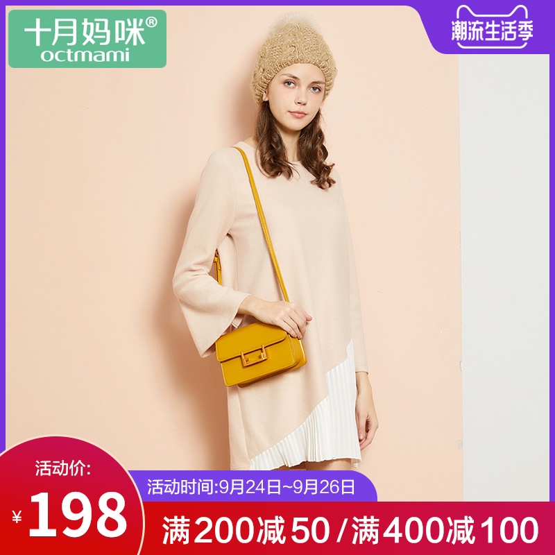 十月妈咪孕妇针织毛衣钉珠可哺乳连衣裙秋装长袖t恤裙中长款辣妈