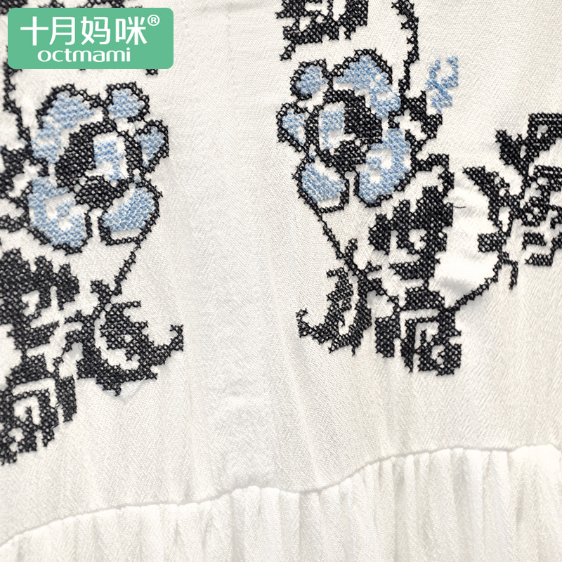 • octmami十月妈咪特康专卖十月妈咪孕妇装新款夏装人棉皱绣花中长款上衣时尚雪纺衫夏季12/4