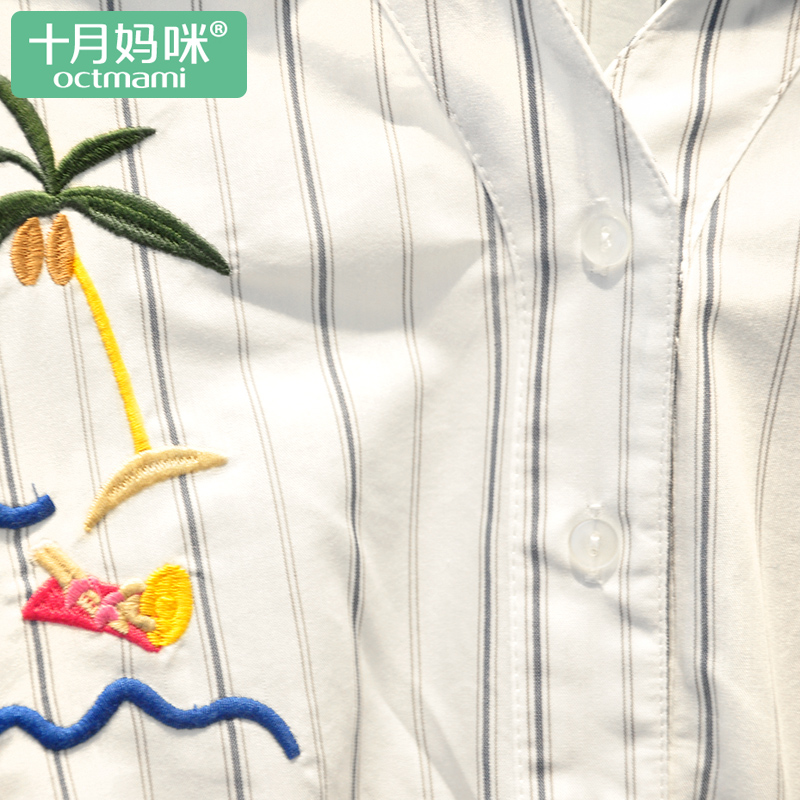 • octmami十月妈咪特康专卖十月妈咪孕妇装新款夏装梭织条纹绣花短袖甜美连衣裙韩版裙子12/4