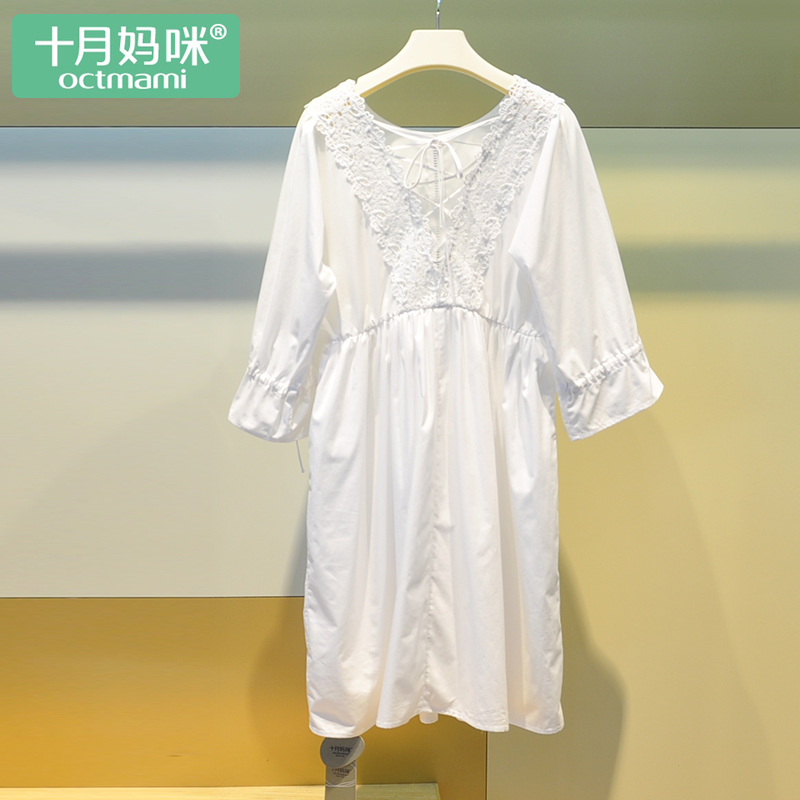 • octmami十月妈咪特康专卖十月妈咪孕妇装新款春夏装梭织白色连衣裙全棉裙子潮妈春季12/4