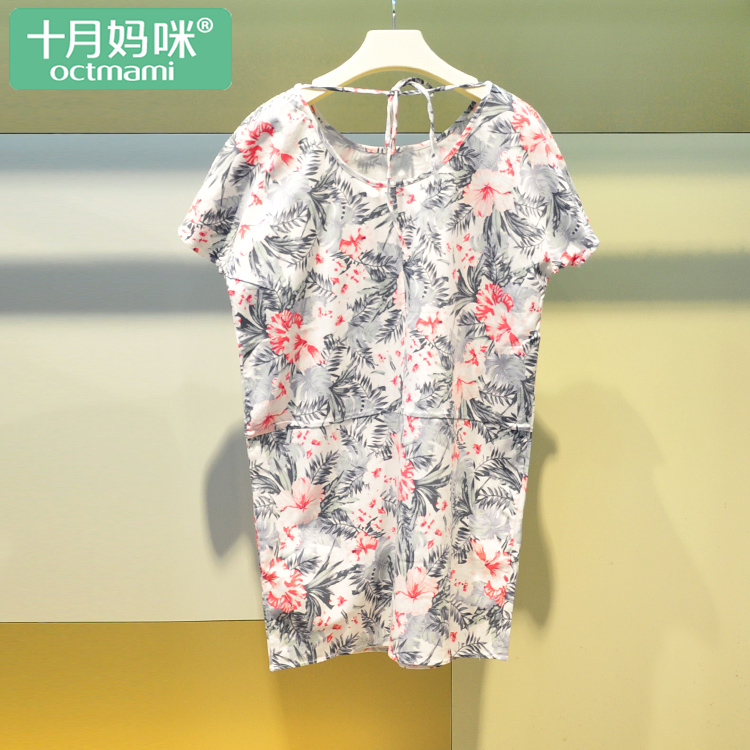 • octmami十月妈咪特康专卖十月妈咪孕妇装新款春夏装棉贡印花圆领短袖连衣裙子夏季潮妈12/4