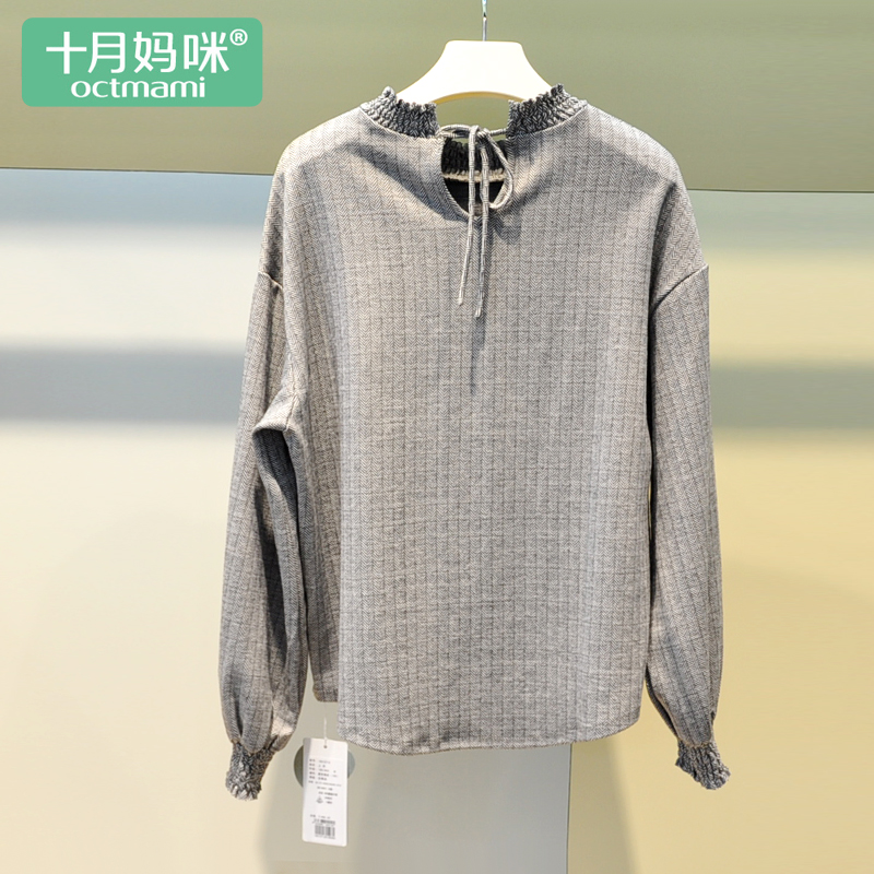 • octmami十月妈咪特康专卖十月妈咪秋冬款人字纹针织孕妇宽松上衣遮肚韩版长袖t恤时尚款01/4
