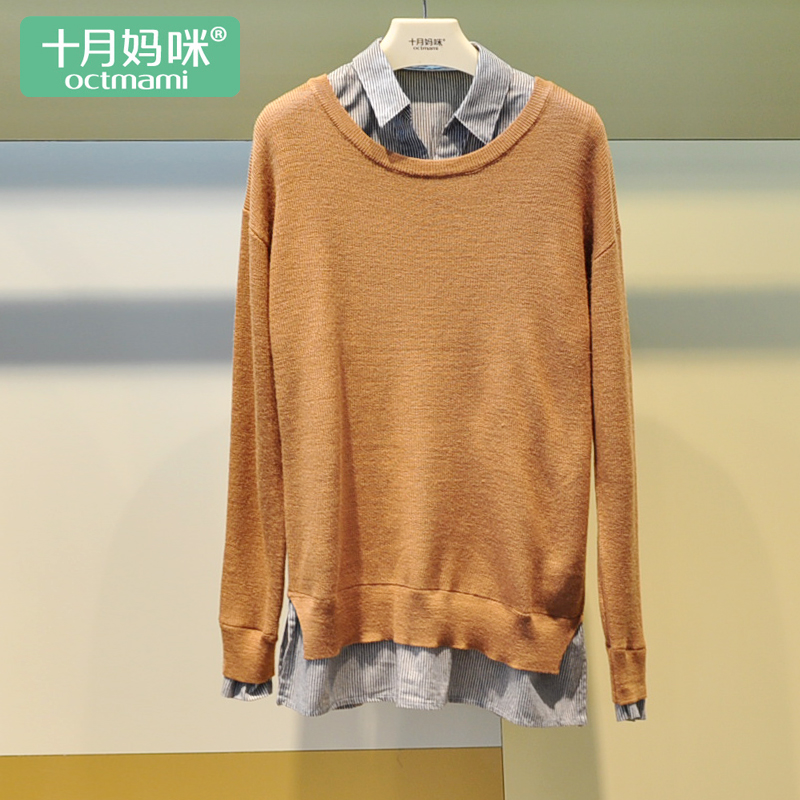 • octmami十月妈咪特康专卖十月妈咪春秋装新款孕妇装假两件衬衫领长袖宽松显瘦针织毛衣12/4