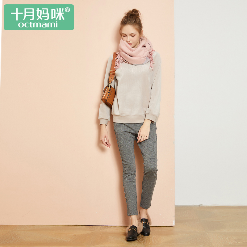 • octmami十月妈咪特康专卖十月妈咪孕妇装新款秋装孕妇韩版时尚针织千鸟格托腹裤铅笔裤01/4
