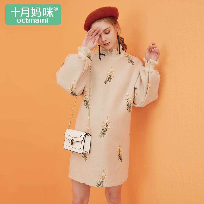 octmami十月妈咪特康专卖十月妈咪孕妇装冬装时尚款孕晚期连衣裙女中长款秋冬款遮肚不显怀