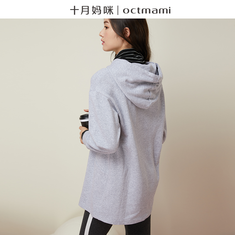 • octmami十月妈咪特康专卖十月妈咪秋季孕妇装连帽卫衣女春秋中长款宽松上衣可哺乳T恤秋天12/4